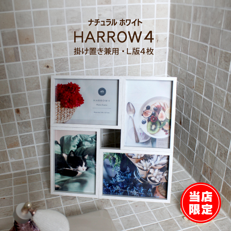 当店限定 フォトフレーム 写真立て ハロウ4 HARROW4ホワイト 壁掛け スタンド 木製写真立て 4枚 L判 複数枚 ギフト