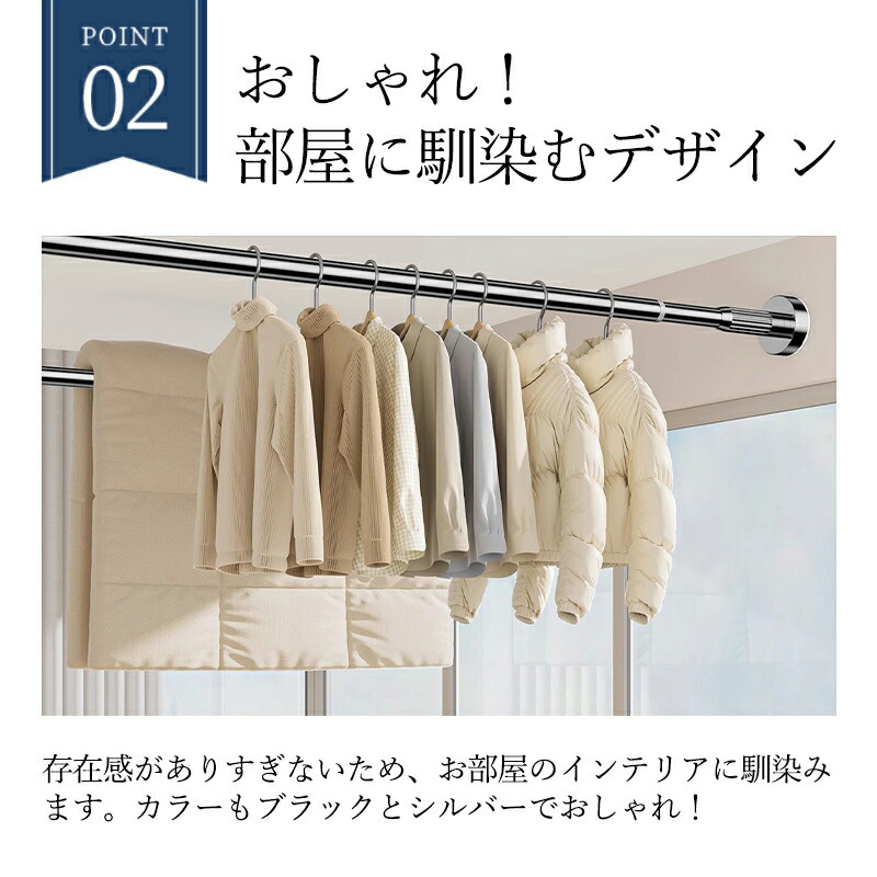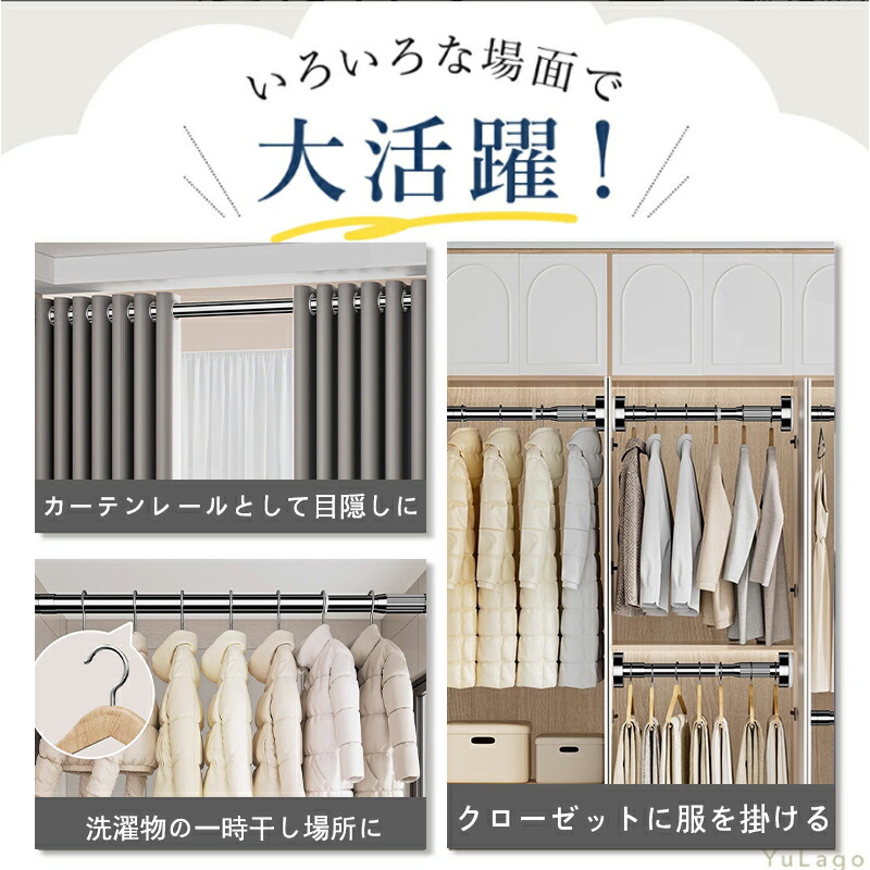 強力突っ張り棒 つっぱり棒 ステンレス 強い負荷 ドリル不要 35-250cm 伸縮 クローゼットロッド シャワーカーテンロッド 物干し竿 洗濯干し 布団干し 室内 屋外