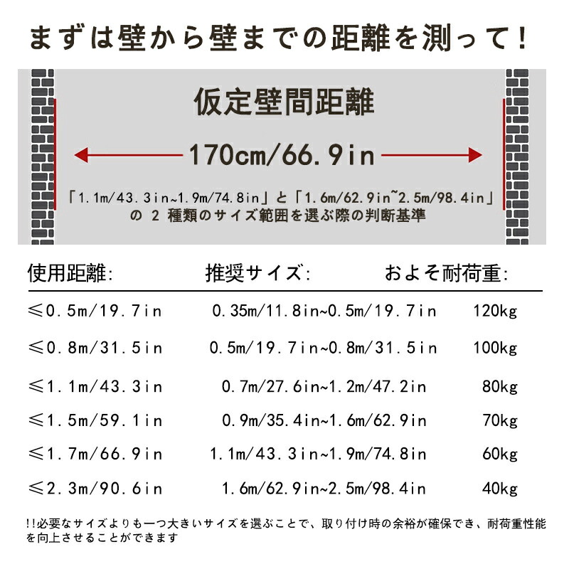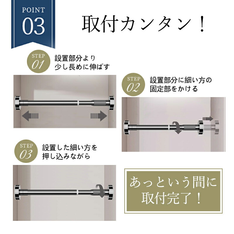 壁にねじで穴を開ける必要はなく、くぎやネジ不要!突っ張り棒 35cm〜250cm つっ張り棒 ステンレス 耐荷重 突っぱり棒
