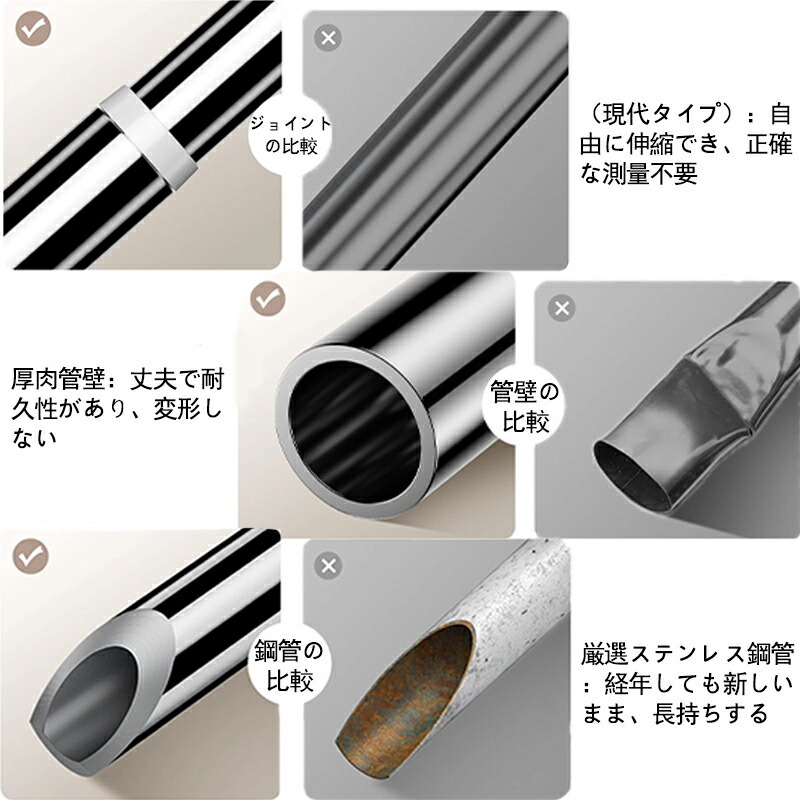 強力突っ張り棒 つっぱり棒 ステンレス 強い負荷 ドリル不要 35-250cm 伸縮棒 クローゼットロッド カーテンロッド シャワーカーテンロッド 物干し竿 洗濯干し 布団干し 室内 屋外