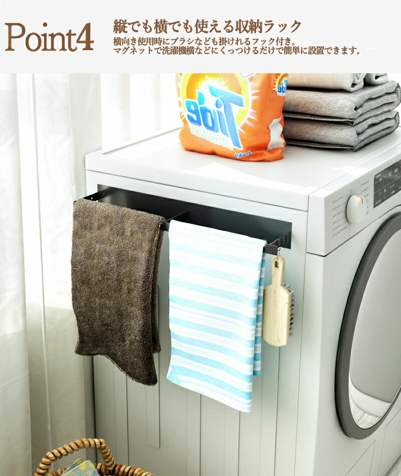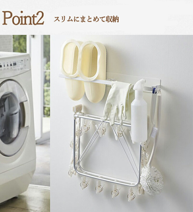 マグネット洗濯ハンガー収納ラック ハンガーかけ 磁石 洗濯バサミ 洗濯機横 洗濯用品収納 脱衣所収納 シンプル おしゃれ デッドスペース 収納 マグネット