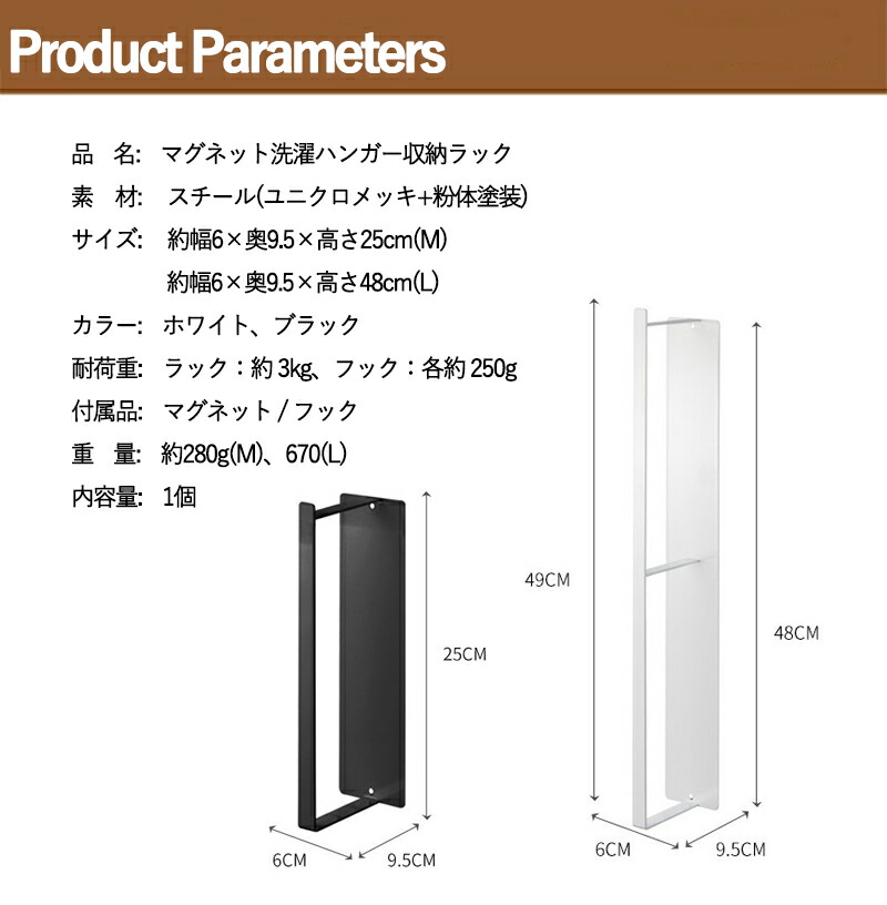 マグネット洗濯ハンガー収納ラック ホワイト/ブラック ハンガーかけ 磁石 洗濯バサミ 洗濯機横 洗濯用品収納 脱衣所収納 シンプル おしゃれ デッドスペース 収納 マグネット