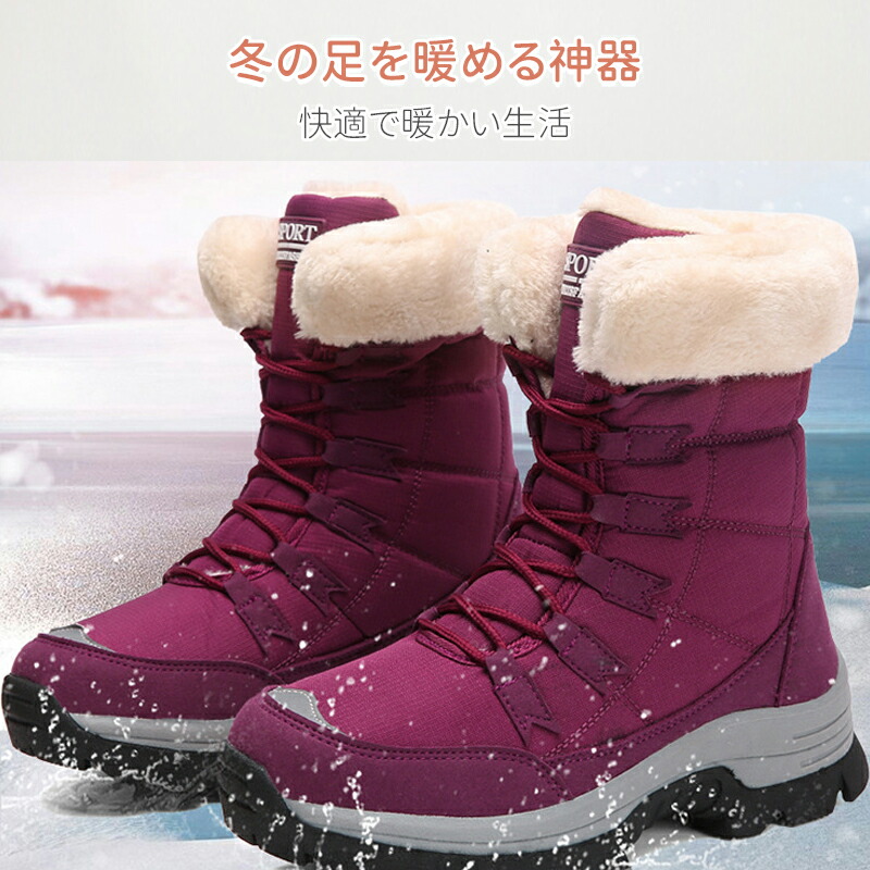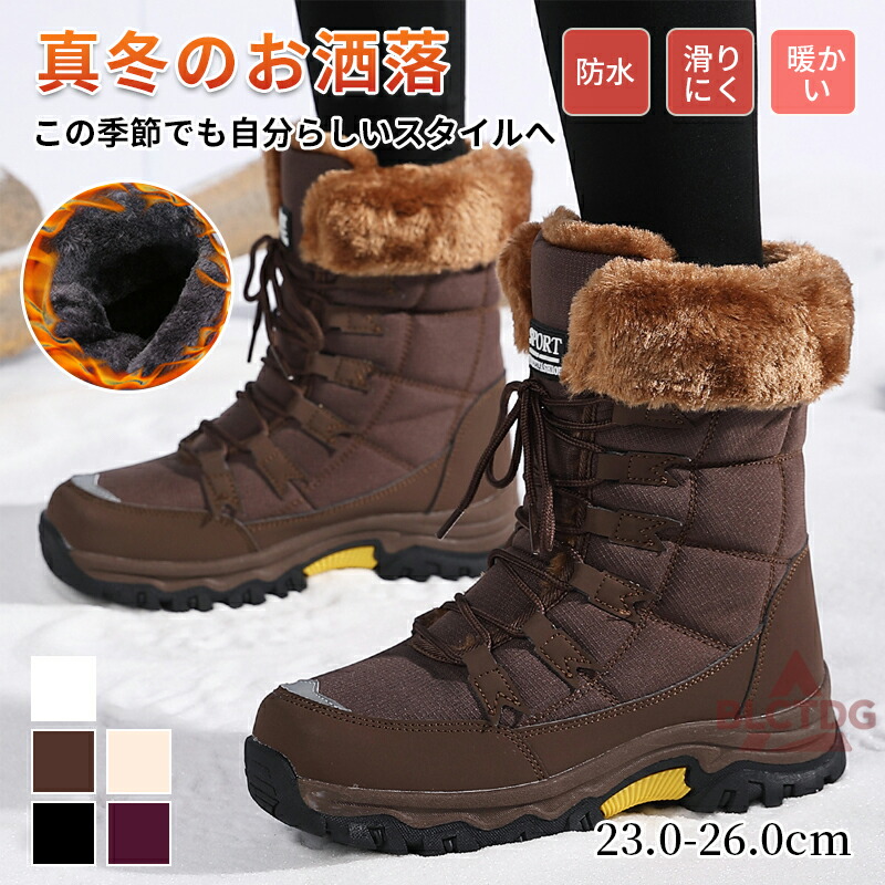 スノーブーツ レディース 防寒・撥水加工・暖かい ウインターブーツ スノーシューズ アウトドア 滑らない 防水 あったか レースアップ 紐 軽い 快適 痛くない