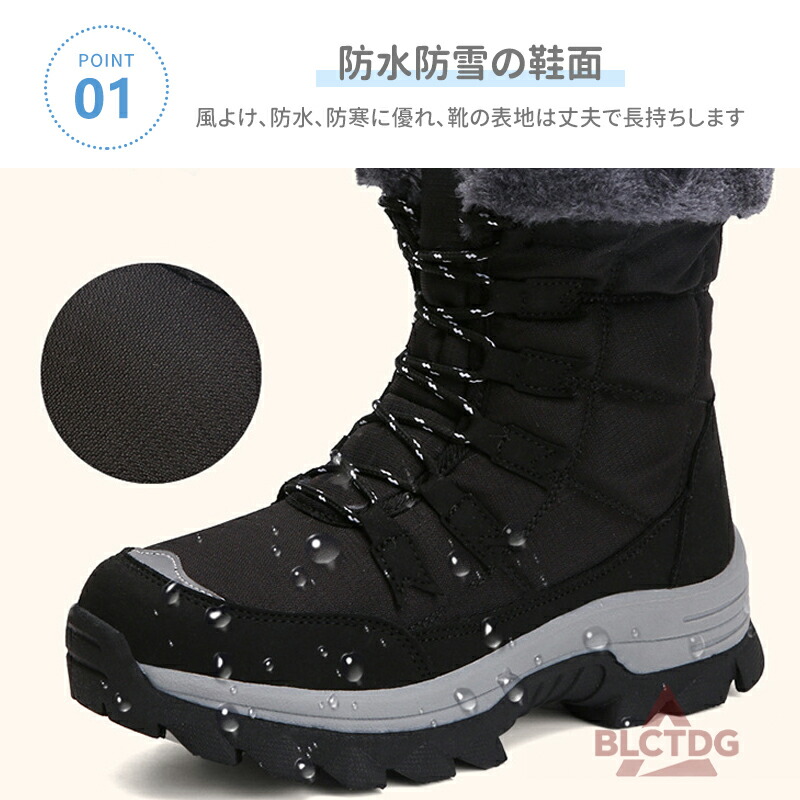 冬の寒さをシャットアウト!「中綿入り」 スノーブーツ登場br> 防水素材使用、防水構造のデザインを取って、一定の通気性機能を備えます。歩く時、水の出入りを防ぎることができ、優しくて快適な歩行を実現しています。br> 足元をしっかりと包み込み 冬の厳しい寒さから守ってくれます。