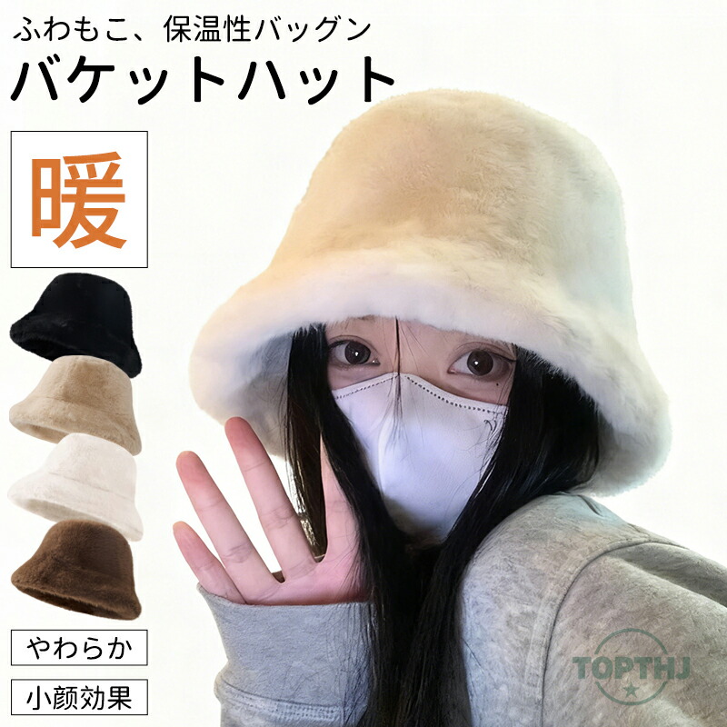 バケットハット レディース 冬 ファー エコファー ふわふわ もこもこ 可愛い おしゃれ 防寒 暖かい 帽子 フード 無地 カジュアル なめらか ふんわり ハット 小顔効果