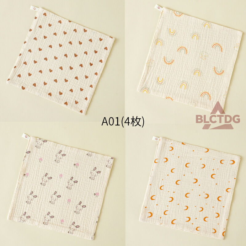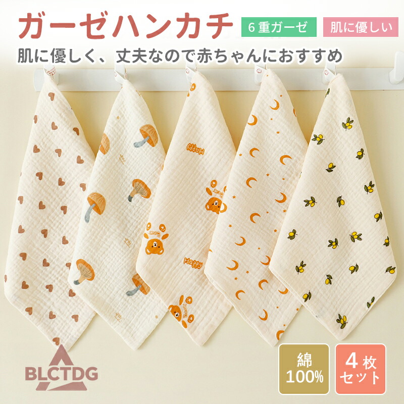 ガーゼタオル 4枚組 ベビー フェイスタオル ハンドタオル ガーゼタオル ガーゼハンカチ キッズ ループ付 6重 保育園 25*25cm 綿 綿100% 入園準備 新生児 バスタオル 赤ちゃん よだれふき 食事 沐浴 出産祝 柔らかく 吸水