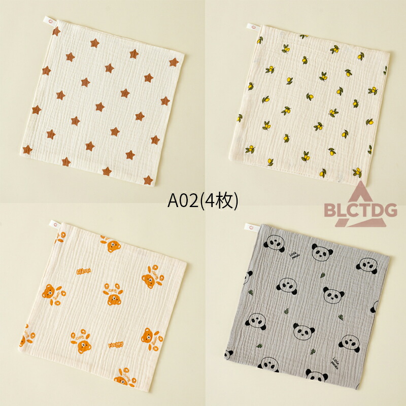 ガーゼタオル 4枚組 ベビー フェイスタオル ハンドタオル ガーゼタオル ガーゼハンカチ キッズ ループ付 6重 保育園25*25cm綿 100% 入園準備 新生児 バスタオル