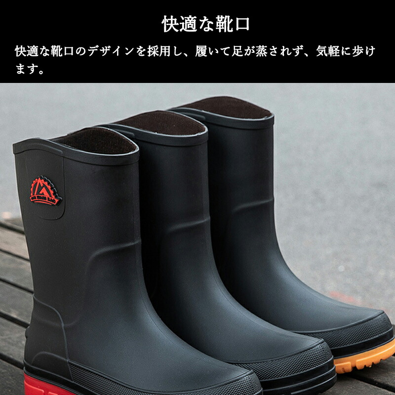 ミドル丈 長靴 レインブーツ メンズ 雪 おしゃれ 軽量 雨 完全防水 釣り 作業 幅広 農作業 ガーデニング 防水 滑らない 蒸れにくい おしゃれ レインシューズ