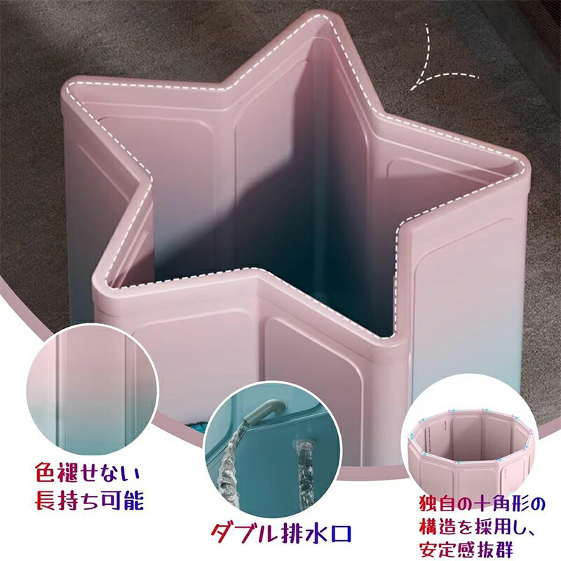 【耐久性・安定性】ポータブルバスタブは独自の十角形の構造を採用し、安定感は抜群です。