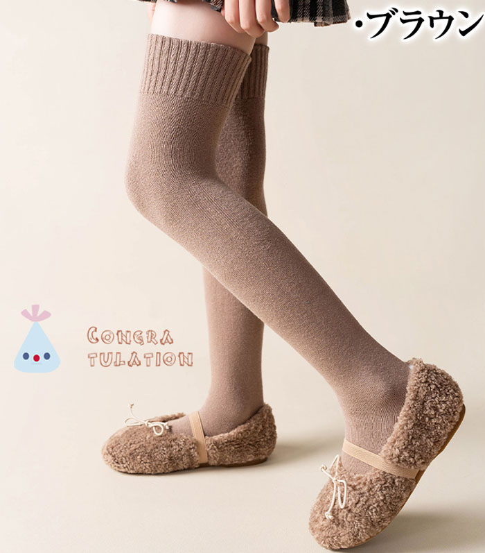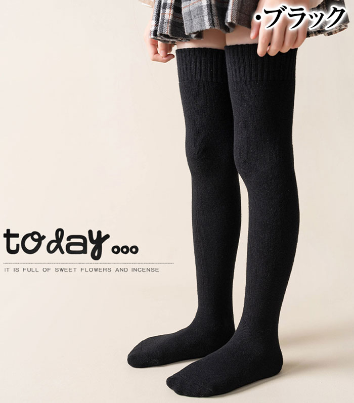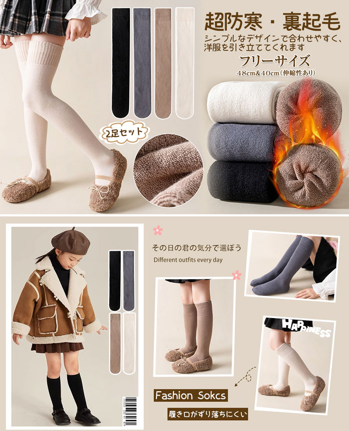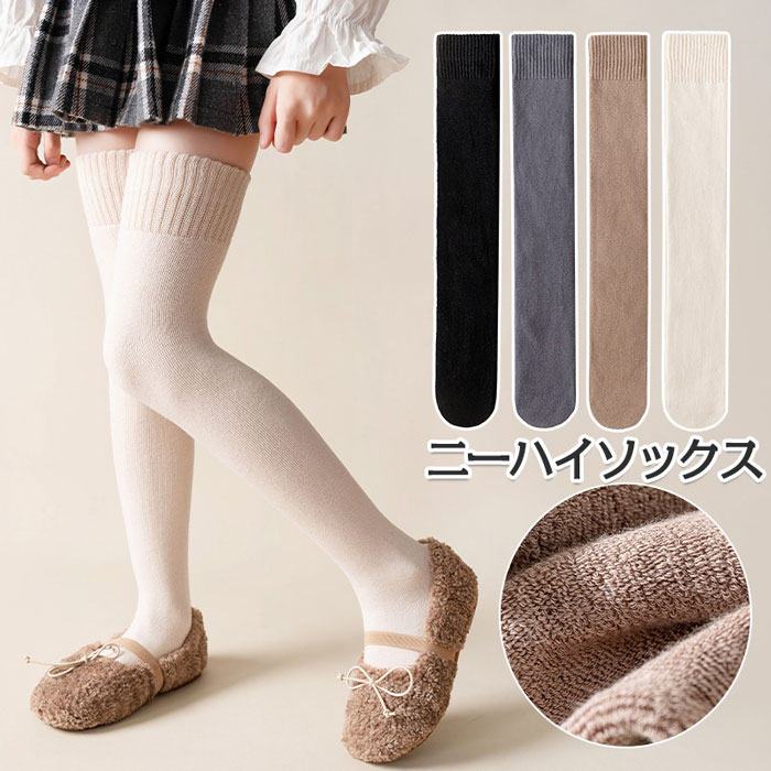 2足セット ニーハイソックス 女の子 暖かい キッズ 子供 裏起毛 ハイソックス 厚手 ソックス 膝上 あったか 冷え対策 靴下 小学生 中学生 高校生 無地 秋冬用