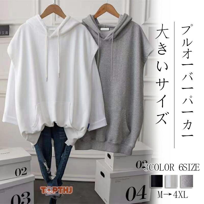 プルオーバー パーカー レディース 薄手 夏 トップス ベスト フレンチスリーブ フード 大きいサイズ 袖なし プルオーバーパーカー パーカー ミドル丈 ポケット
