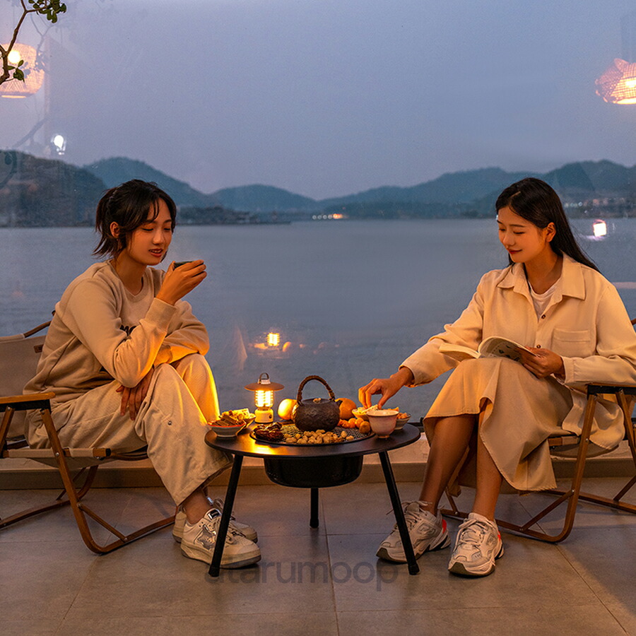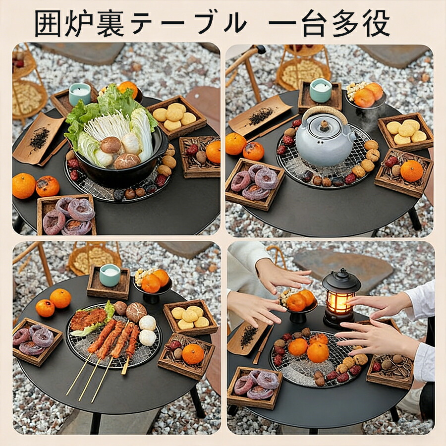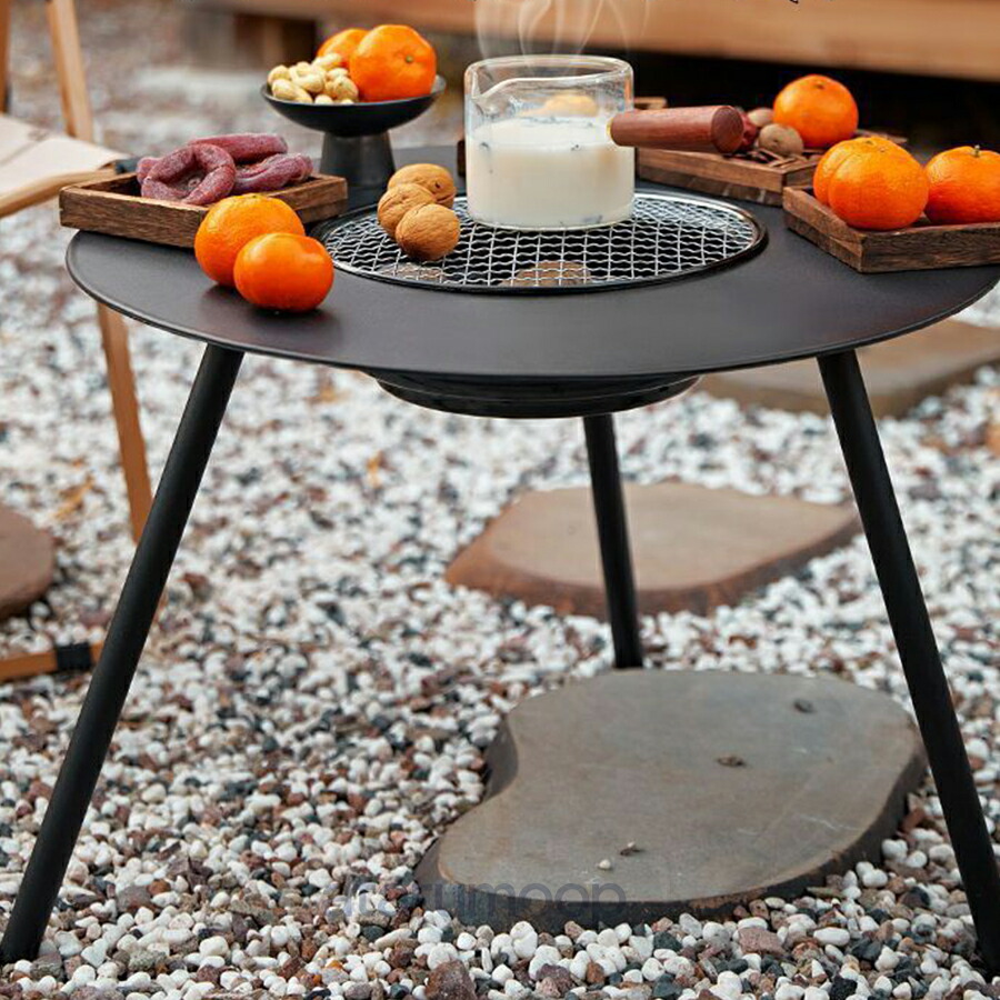 炭火焼きコンロ 焼き鉄板付き 友達&家族連れ コンロ周り BBQ& お茶の淹れ 卓上焼き 卓上コンロ バーベキューグリル 多用途暖炉テーブル 焚き火テーブル