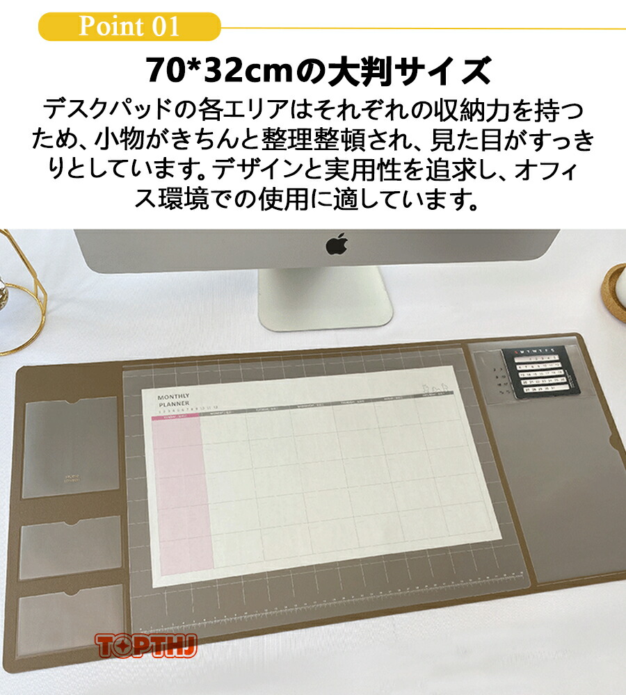 カレンダー PVS透明コーティング付き 多機能 ミニマムスタイル デスクマット Yibao