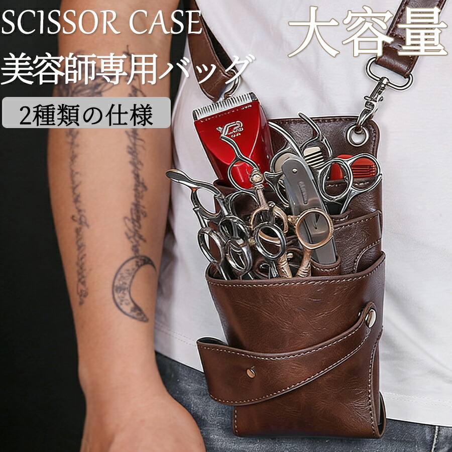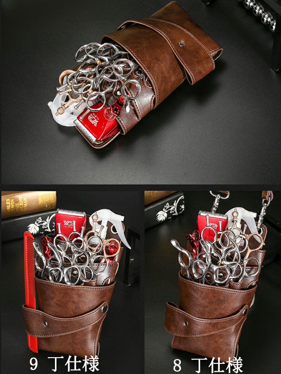 シザーケース トリマー用 シザーバッグ 理容師 ベルト付き 高級革 8丁 9丁美容師 美容師さん トリマーさん 花屋 高級感 バッグ 園芸関係 はさみYibao