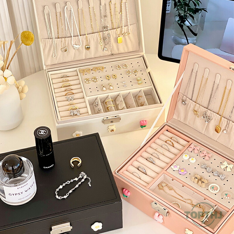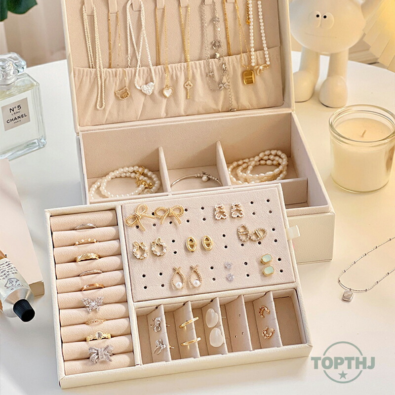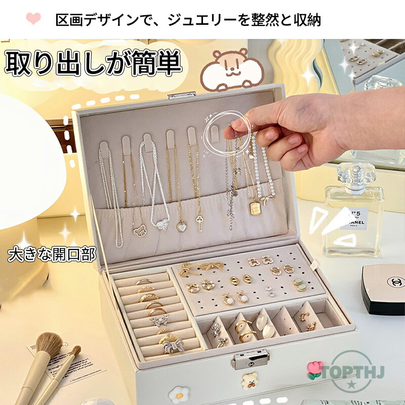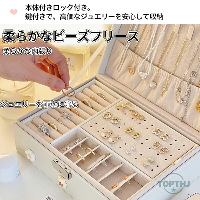 ジュエリーオーガナイザーボックス レディース ジュエリーボックス オーガナイザー ラージ ロック可能 ディスプレイ ジュエリーホルダー イヤリング リング
