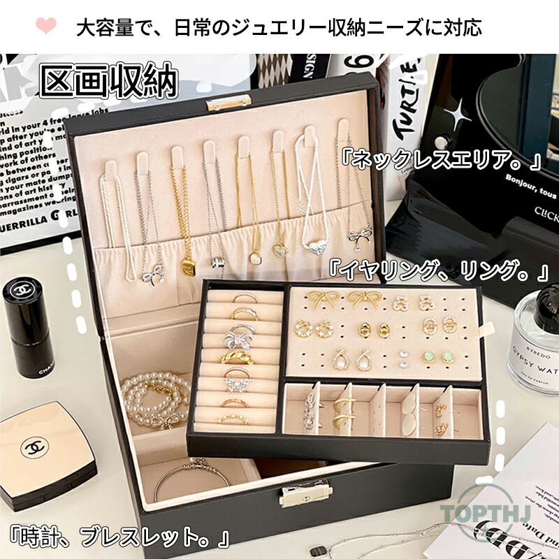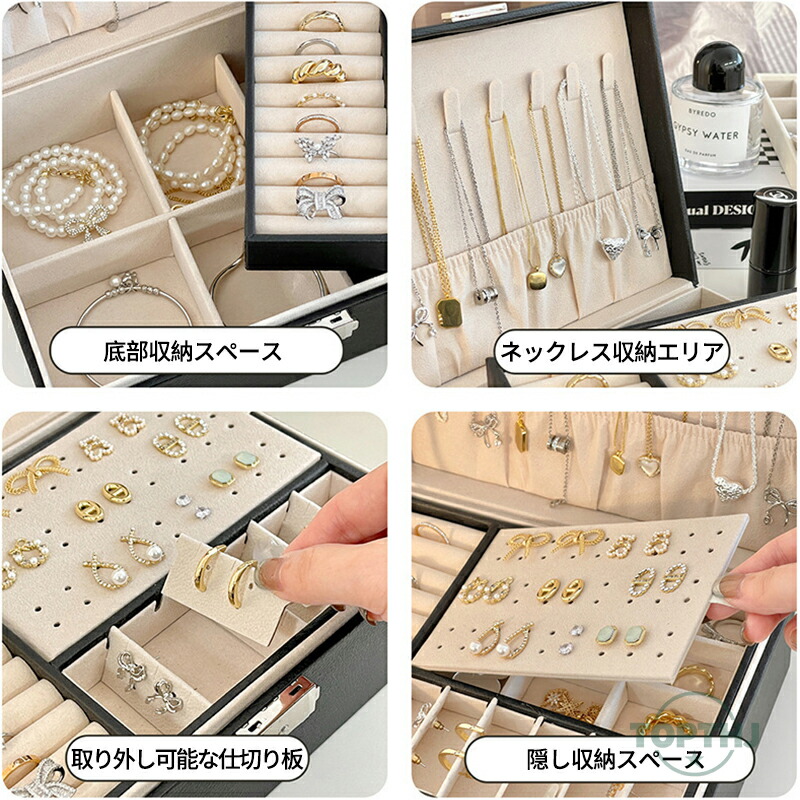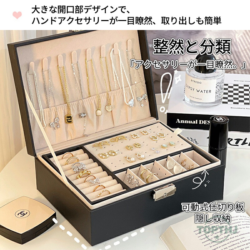 "指輪、ピアス、イヤリング、ネックレス、腕時計などたっぷり収納できる