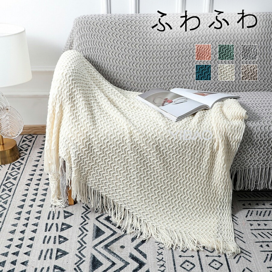 ブランケット シングル 毛布 北欧風 大判 ニットブランケット ふわふわ タッセル付き おしゃれ 冷房対策 肌掛け 膝掛け フリンジ付き 冷え対策 お昼寝 もうふ