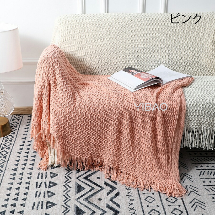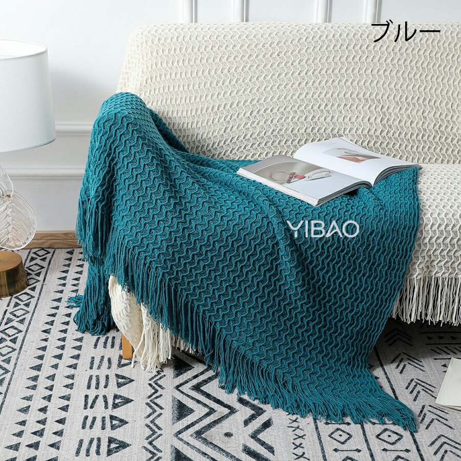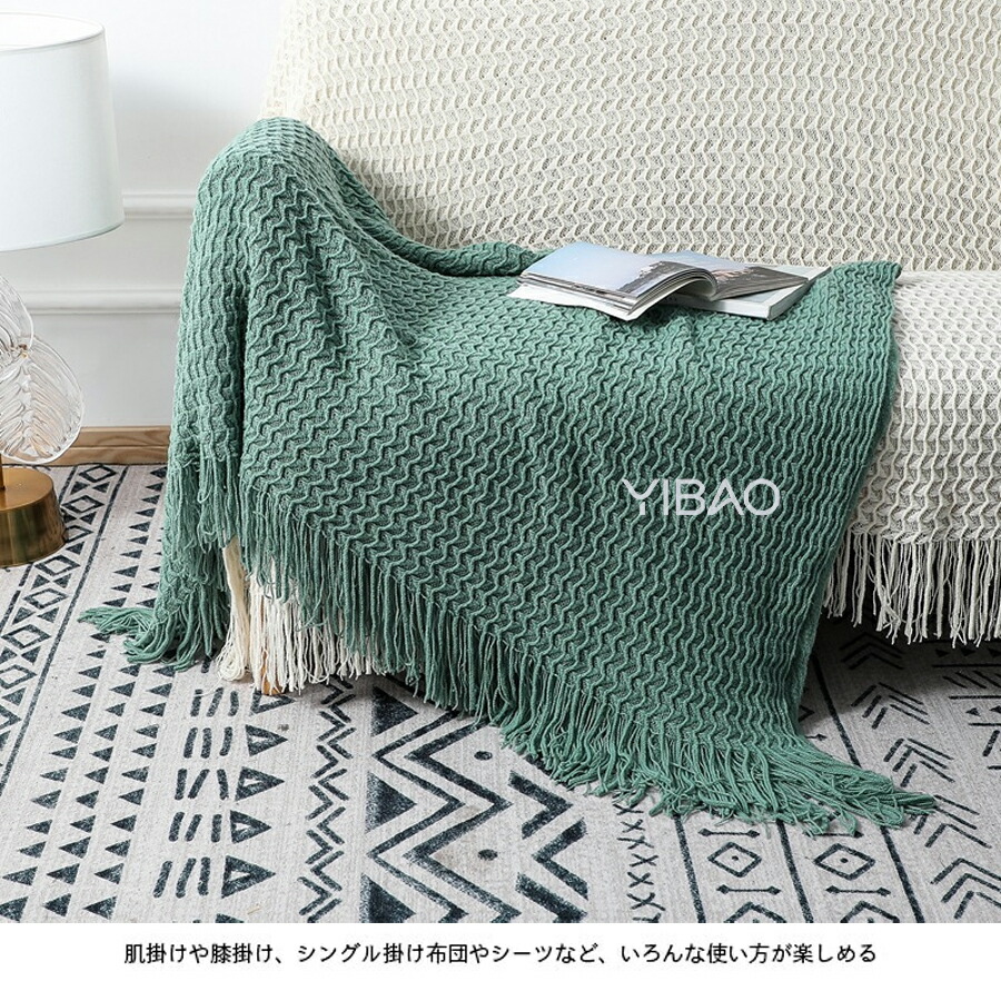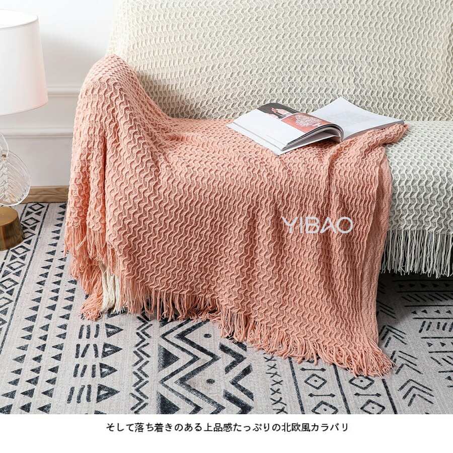 ブランケット シングル 毛布 北欧風 大判 ニットブランケット ふわふわ タッセル付き おしゃれ フリンジ付き 冷え対策 お昼寝 もうふ もこもこ Yibao