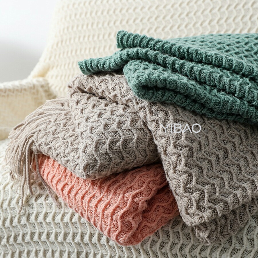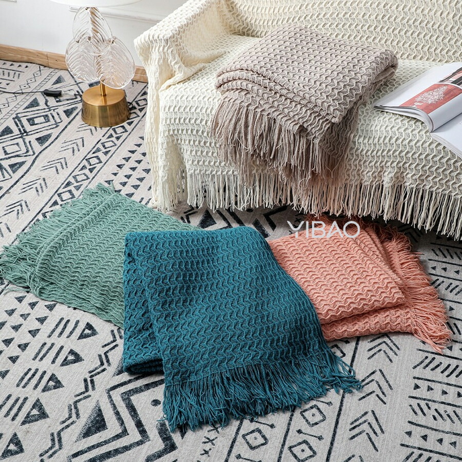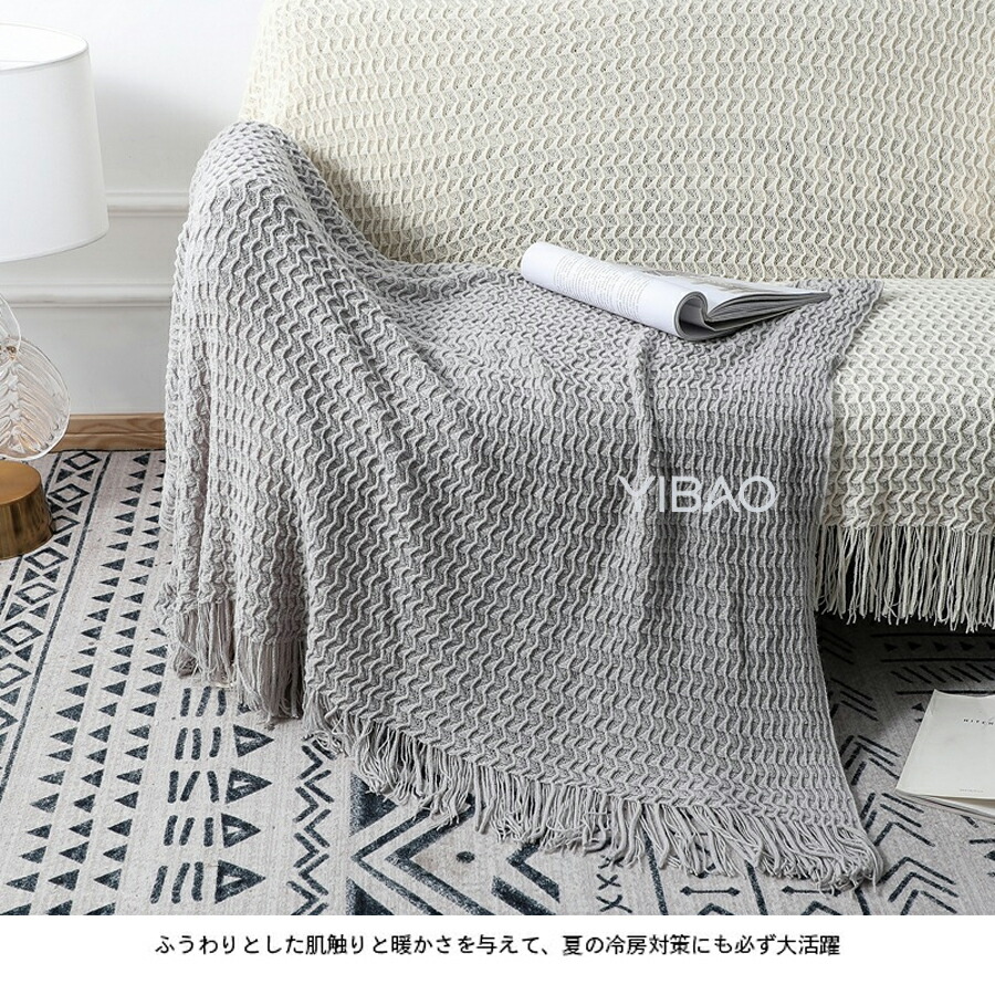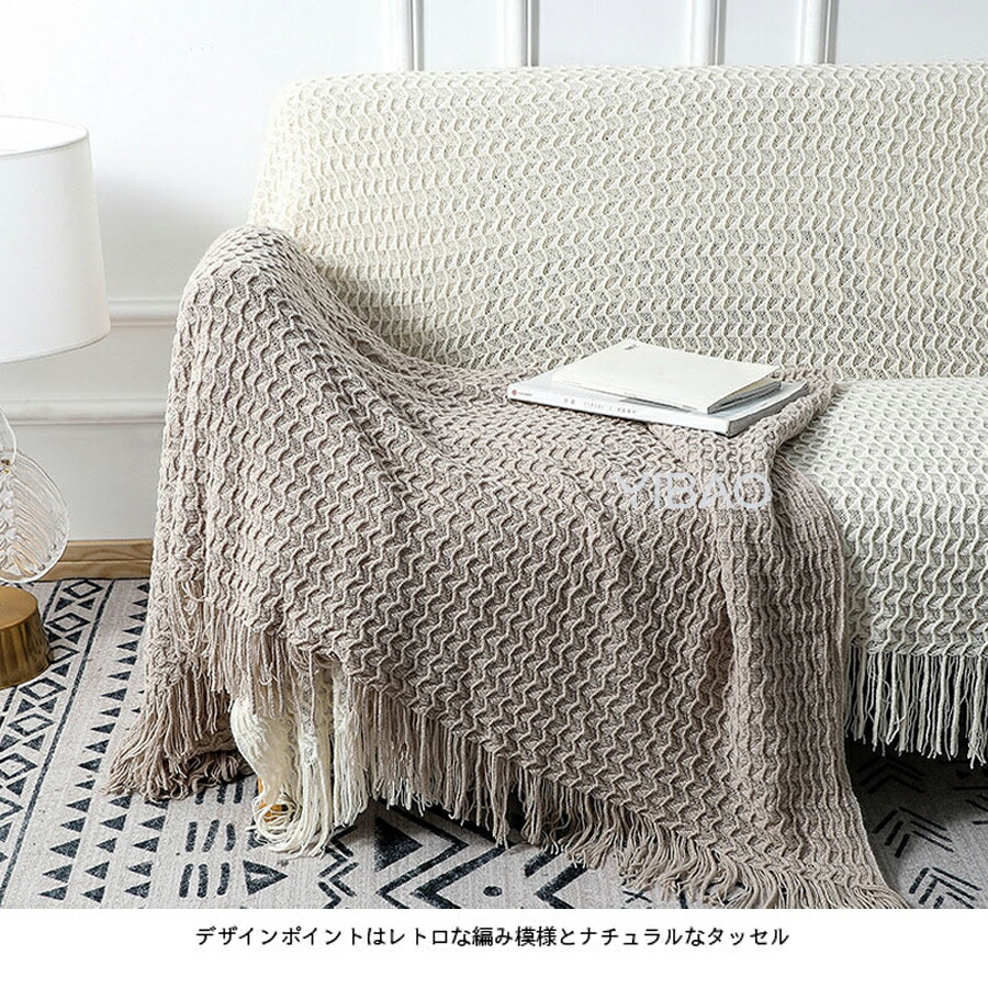 ブランケット シングル 毛布 北欧風 大判 ニットブランケット ふわふわ タッセル付き おしゃれ フリンジ付き 冷え対策 お昼寝 もうふ もこもこ Yibao