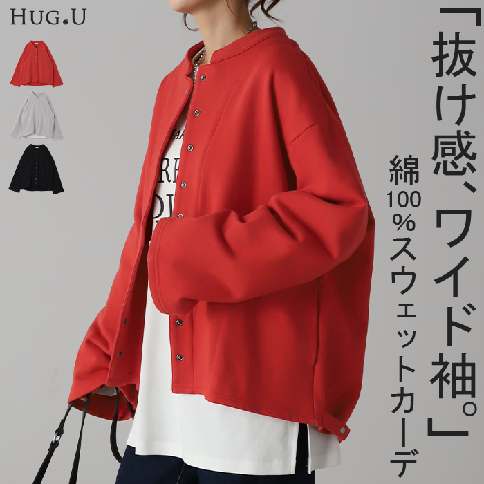 ロングシーズン 丸首 ノーカラー ワイド ワイドスリーブ トレーナー スウェットカーデ スウェットカーディガン コクーンシルエット 羽織り 高見え 前後差 軽アウター 厚手 コットン100% コットン 綿 綿100% ポケット ロングスリーブ 二の腕カバー ミディアム ミドル丈 ロングスリーブ パイル地 ゆったり 冷房対策 冷え性予防 レッド レット 赤 赤色 グレー 灰 灰色 ブラック 黒 旬 トレンド プラスサイズ ビッグシルエット ビッグ ビック big ビックサイズ ビッグサイズ オーバーサイズ 大きい 大きめ フリーサイズ フリー S M L LL 2L XL 3L XXL LLL カジュアル シンプル 大人 大人カジュアル オトナ 女性 綺麗 きれい キレイめ きれいめ 高見え 上質 上品 20代 30代 40代 50代 60代 おしゃれ お洒落 オシャレ 春 夏 秋 冬 春夏 秋冬 HUG.U HUGU ハグユー はぐゆー 羽織 チュニック お尻が隠れる ゆったり 大人