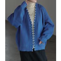 カーディガン カーデ 大粒 パール ニット スポンジニット きれいめ 体型カバー レディース トップス ぽわん袖