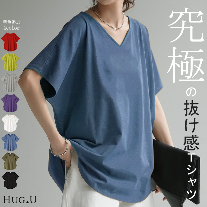 ティシャツ 半袖 半袖T 半袖Tシャツ 無地 ビッグT ビッグTシャツ ビックT ビックTシャツ ラウンド 長い ロングTシャツ ロングカットソー チュニック丈 ドルマンスリーブ 変形 V字ネック 白T 白ティー 白ティ ブラック 黒 黒色 ホワイト 白 白色 ブルー 青 青色 カーキ 緑 緑色 旬 トレンド プラスサイズ オーバーサイズ 大きい 大きめ フリーサイズ フリー S M L LL 2L XL 3L XXL LLL カジュアル ベーシック オフィス オフィスカジュアル 着回し シンプル 大人 大人カジュアル オトナ 女性 20代 30代 40代 50代 60代 おしゃれ お洒落 オシャレ春 夏 秋 冬 春夏 秋冬 HUG.U HUGU ハグユー はぐゆー インナー ティーシャツ ビック チュニック 体型カバー 半袖 大きいサイズ Vネック ゆったり お尻が隠れる