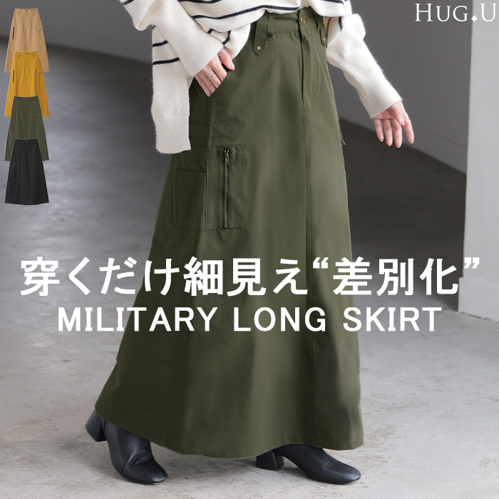 ロング丈スカート ボトム ポケット付き マキシ丈スカート 高身長 ゴムウエスト ウェストゴム ハイウエスト ハイウェスト ゆる ゆったりサイズ らくちん 楽ちん 楽 動きやすい スタイルアップ 脚長効果 お出かけ カーキ グリーン 緑色 ベージュ ブラック ホワイト 白 ベージュ イエロー 黄 黄色 マスタード レディースファッション 旬 トレンド プラスサイズ オーバーサイズ 大きい 大きめ フリーサイズ フリー S M L LL 2L XL 3L XXL LLL カジュアル ベーシック オフィス オフィスカジュアル 着回し シンプル 大人 大人カジュアル オトナ 女性 綺麗 きれい キレイめ きれいめ 高見え 上質 上品 20代 30代 40代 50代 60代 おしゃれ お洒落 オシャレ 可愛い かわいい カワイイ カッコいい カッコイイ 春 夏 秋 冬 春夏 秋冬 HUG.U HUGU ハグユー はぐゆー ウエストゴム ポケット 無地 ゆったり ミリタリー カーゴスカート 体型カバー ハイウエスト アウトドア 大きいサイズ