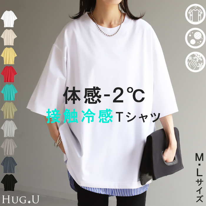 Tシャツ 接触冷感 ロング 体感-2℃ レディース お手入れ簡単 冷感 トップス 二の腕カバー カットソー チュニック ゆったり レイヤード