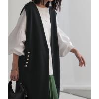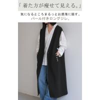 ベスト ジレ パール ロングベスト レディース トップス アウター ノーカラ― Vネック ロング ロングジレ ノースリーブ 羽織 薄手 レイヤード 体型カバー