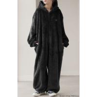 ルームウェア パジャマ 着る毛布 レディース オールインワン ロング ロゴ つなぎ 刺繍 洗濯機可 無地 長袖 リブ 部屋着 防寒 モコモコ ナイトウェア