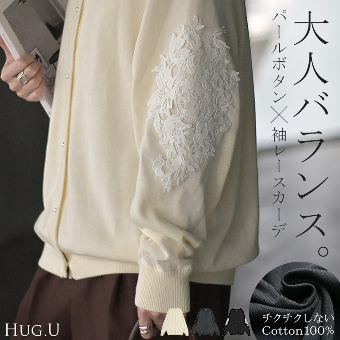 ニットカーディガン ニットカーデ ニットウェア 綿 綿100% コットン コットン100% 柔らかい ドッキング 異素材 異素材ドッキング レースドッキング ボタン ラウンドカラー Uネック ノーカラー バンドカラー ノーカラーカーディガン ノーカラーカーデ ちくちくしない リブ袖 ブラック 黒色 オフホワイト アイボリー グレー 灰色 旬 トレンド プラスサイズ オーバーサイズ 大きい 大きめ フリーサイズ フリー S M L LL 2L XL 3L XXL LLL カジュアル 着回し シンプル 大人 大人カジュアル オトナ 女性 綺麗 きれい キレイめ きれいめ 高見え 上質 上品 20代 30代 40代 50代 60代 おしゃれ お洒落 オシャレ 春 夏 秋 冬 春夏 秋冬 HUG.U HUGU ハグユー はぐゆー リブ チクチクしない チュニック ゆったり 体型カバー 大きいサイズ きれいめ