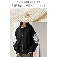 カーディガン レース 綿100 レディース カーデ トップス セーター ニットカーディガン 異素材MIX パール パールボタン 長袖 長い 丸襟