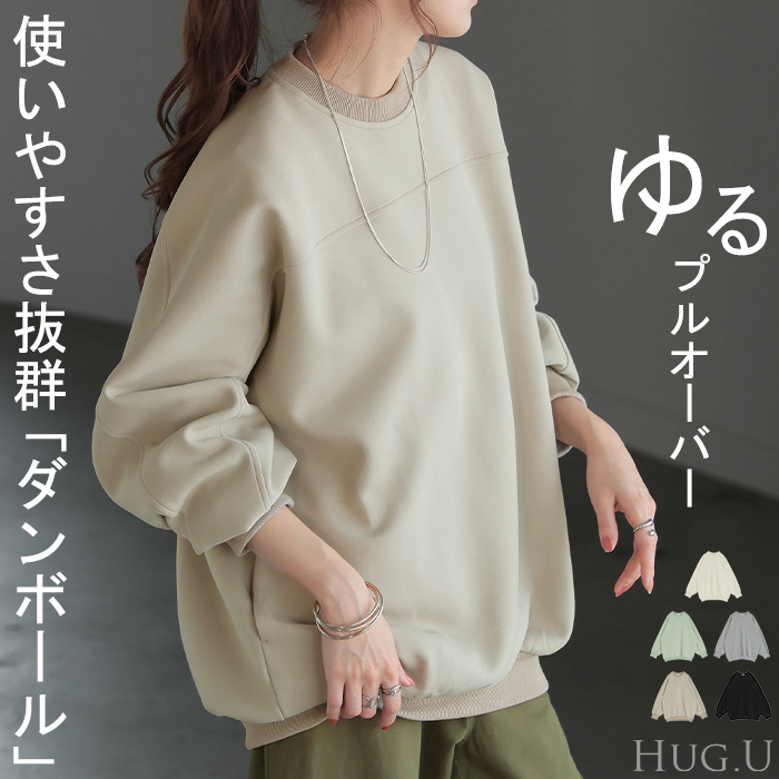 トップス スウェット ダンボール プルオーバー レディース トップス ロング トレーナー オーバー シワになりにくい 無地