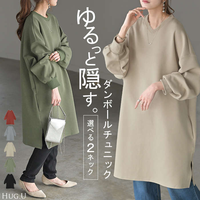 ワンピース ダンボール チュニック レディース トップス ロング スウェット プルオーバー シワになりにくい 無地 長袖 ワンピ ロングワンピース スウェットワンピース クルーネック リブ レイヤード ドルマン オーバーサイズ ゆったり 体型カバー 二の腕カバー 大きいサイズ ブラック 黒色 カーキ グリーン 緑 緑色 ベージュ アッシュベージュ レディースファッション 旬 トレンド プラスサイズ ビッグシルエット ビッグ ビック big ビックサイズ ビッグサイズ オーバーサイズ 大きい 大きめ フリーサイズ フリー S M L LL 2L XL 3L XXL LLL カジュアル 着回し シンプル 大人 大人カジュアル オトナ 女性 綺麗 きれい キレイめ きれいめ 高見え 上質 上品 20代 30代 40代 50代 60代 おしゃれ お洒落 オシャレ 春 夏 秋 冬 春夏 秋冬 HUG.U HUGU ハグユー はぐゆー ドルマン オーバーサイズ ゆったり 体型カバー 大きいサイズ