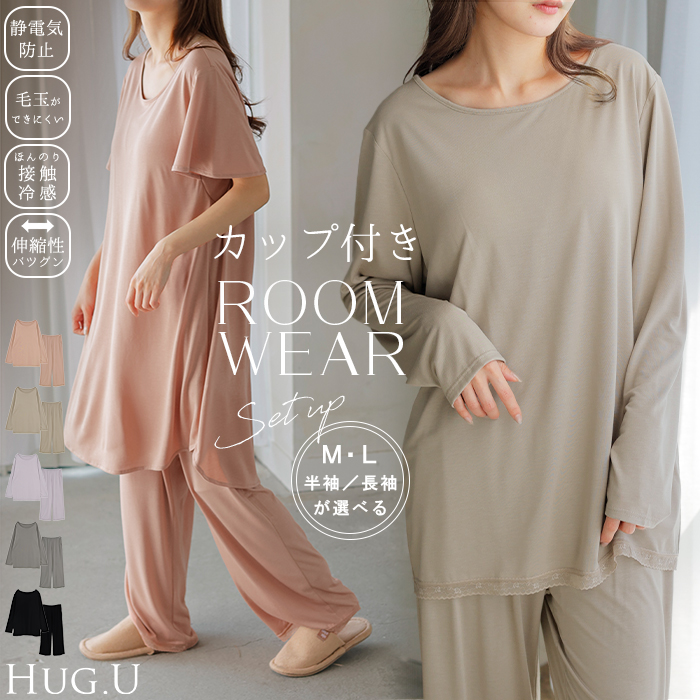 部屋着 お泊り ゆったり リラックスウェア リラックスウエア 静電気 ひんやり 冷たい 涼しい 暑がり 冷却 夏用 真夏用 しわになりにくい お手入れ簡単 2点セット 上下セット 二点セット セットアップコーデ サーモンピンク ラベンダー ナチュラルベージュ アッシュグレー ブラック ピンク ピンク色 桃 桃色 パープル 紫 紫色 ベージュ 灰色 旬 トレンド プラスサイズ ビッグシルエット ビッグ ビック big ビックサイズ ビッグサイズ オーバーサイズ 大きい 大きめ フリーサイズ フリー S M L LL 2L XL 3L XXL LLL カジュアル ベーシック オフィス オフィスカジュアル 着回し シンプル 大人 大人カジュアル オトナ 女性 綺麗 きれい キレイめ きれいめ 高見え 上質 上品 20代 30代 40代 50代 60代 おしゃれ お洒落 オシャレ 春 夏 秋 冬 春夏 秋冬 HUG.U HUGU ハグユー はぐゆー 毛玉になりにくい ストレッチ 長袖 半袖 通気性 吸湿性 蒸れにくい シワになりにくい 接触冷感 リラックス 旅行