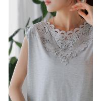 タンクトップ レース レイヤード インナー トップス タンク レディース カットソー 花柄 ノースリーブ キャミソール ロング クルーネック ロングタンク 重ね着