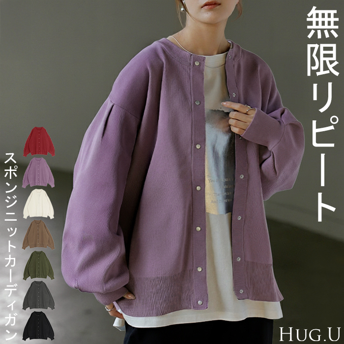 カーディガン スポンジニット 軽量 レディース ニット カーデ トップス セーター ロング ニットカーディガン 長袖 長い ボリュームスリーブ クルーネック ゆったり 羽織 ヨレない グログランテープ 大きいサイズ 体型カバー カジュアル ブラック 黒 オフホワイト アイボリー 生成り グレー ダークグレー 灰色 ブラウン モカ 茶 茶色 カーキ 緑 緑色 旬 トレンド プラスサイズ ビッグシルエット ビッグ ビック big ビックサイズ ビッグサイズ オーバーサイズ 大きい 大きめ フリーサイズ フリー S M L LL 2L XL 3L XXL LLL ベーシック オフィス オフィスカジュアル 着回し シンプル 大人 大人カジュアル オトナ 女性 綺麗 きれい キレイめ きれいめ 高見え 上質 上品 20代 30代 40代 50代 60代 おしゃれ お洒落 オシャレ 春 夏 秋 冬 春夏 秋冬 HUG.U HUGU ハグユー はぐゆー ぽわん袖 リブ袖 クルーネック 羽織 ゆったり 大きいサイズ 体型カバー