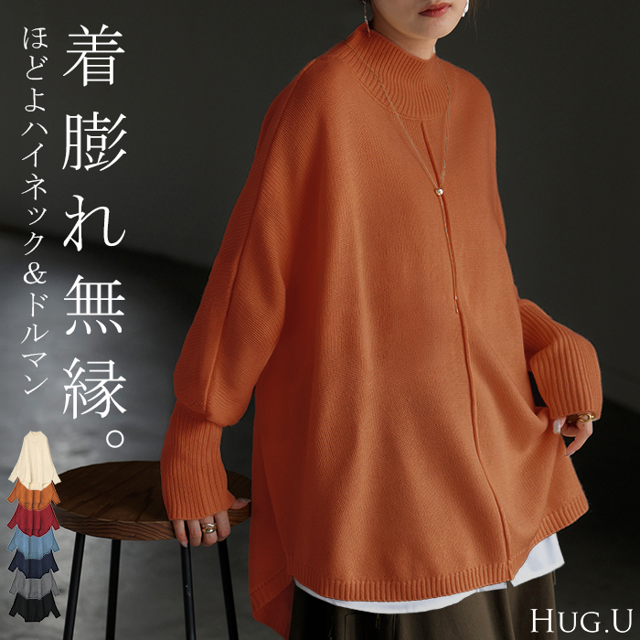 ニット ハイネック ドルマン レディース トップス ロング セーター タートルネックニット オーバー プルオーバー 長袖 長い ドルマンスリーブ タートルネック リブ ラウンド裾 ラウンドヘム チュニック レイヤード ゆったり 体型カバー 大きいサイズ お尻が隠れる ブラック 黒 オフホワイト アイボリー グレー 灰色 ネイビー 紺 レッド 赤 旬 トレンド プラスサイズ オーバーサイズ 大きい 大きめ フリーサイズ フリー S M L LL 2L XL 3L XXL LLL カジュアル 着回し シンプル 大人 大人カジュアル オトナ 女性 綺麗 きれい キレイめ きれいめ 高見え 上質 上品 20代 30代 40代 50代 60代 おしゃれ お洒落 オシャレ 春 夏 秋 冬 春夏 秋冬 HUG.U HUGU ハグユー はぐゆー レイヤード チクチクしない ゆったり 体型カバー 大きいサイズ お尻が隠れる