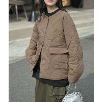 ジャケット 軽量 撥水 中綿 キルティング ジャスト丈 レディース アウター コート ブルゾン ミリタリー ノーカラー オーバーサイズ 大きいサイズ 体型カバー