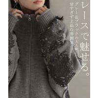 ニット カーディガン 刺繍 レース ロング レディース カーデ トップス セーター オーバー プルオーバー ニットカーディガン 長袖 タートルネック ハイネック
