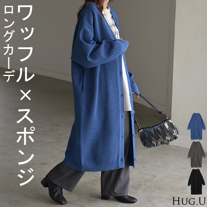 ニットカーディガン ニットカーデ スポンジ スポンジセーター スポンジニットプルオーバー ざっくり ざっくり編み 編み ローゲージ 長い 長め チクチクしない ちくちくしない チュニック チュニック丈 ドルマントップス ドルマン ドルマン袖 ドルマンスリーブ ビッグニット 羽織 羽織り 軽い 軽め 軽量 肩凝らない 春 春ニット Vネック V字ネック 深V ドロップショルダー 無地 シンプル ゆったり ゆる ブラック 黒 黒色 グレー ダークグレー 灰色 ブルー 青 青色 旬 トレンド S M L LL 2L XL 3L XXL LLL カジュアル ベーシック オフィス オフィスカジュアル 着回し シンプル 大人 大人カジュアル オトナ 女性 綺麗 きれい キレイめ きれいめ 高見え 上質 上品 20代 30代 40代 50代 60代 おしゃれ お洒落 オシャレ 春 夏 秋 冬 春夏 秋冬 HUG.U HUGU ハグユー はぐゆー リブ ゆったり 大きいサイズ 体型カバー 二の腕カバー お尻が隠れる