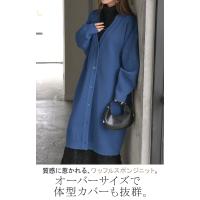 ニット スポンジニット カーディガン レディース ロング カーデ トップス セーター オーバー プルオーバー ニットカーディガン 長袖 軽い ボリュームスリーブ