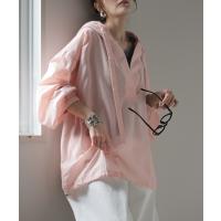 パーカー 綿100 シアー レディース トップス コットン フーディー 透け感 Vネック 長袖 体型カバー スキッパー レイヤード 重ね着 プルオーバー