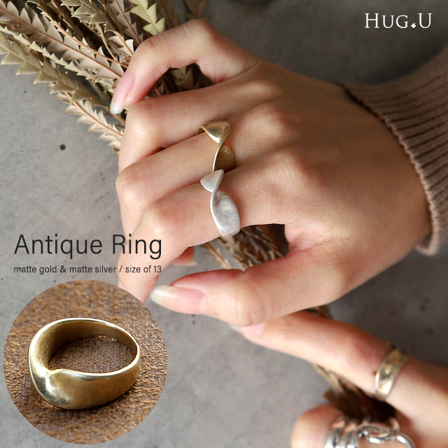 ナチュラル カジュアル ツヤ消し 艶消し vitage 華奢 アンティーク調 マットリング ひねりリング ねじれ りんぐ アクセ 13号 14号 マットカラー シンプルメタル 軽量 軽い 華奢 きれいめ キレイめ 古代金 古代銀 20代 30代 40代 50代 おしゃれ お洒落 オシャレ かわいい 可愛い カワイイ カジュアル 誕生日 プレゼント ギフト 春夏 春 夏 秋 冬 秋冬 HUG.U HUGU ハグユー はぐゆー 母の日 デザイン メタル ファッションリング ごつめ アクセサリー