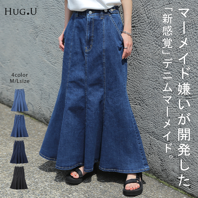 デニム デニムスカート マーメイドスカート マーメイド スカート ロングスカート ロング ロング丈 マキシ マキシスカート マキシ丈 フレア Aライン レディース ゴム ゴムウエスト ウエストゴム ゴム 調整可能 アシンメトリー 体型カバー 大きいサイズ 大きめ きれいめ キレイめ 綺麗目 着痩せ 長い 長め トレンド タイト タイトスカート ストレッチ 伸びる 伸縮性 シンプル ブルー インディゴ インディゴブルー ネイビー ワンウォッシュ ブラック 無地 シンプル ユーズド風 ヴィンテージ風 ビンテージ風 古着風 ストレスフリー 着痩せ お呼ばれ 着回し 母の日 重ね着 すっきり カジュアル ストリート 着回し 大人 大人カジュアル オトナ 女性 綺麗 上質 上品 S M L LL 2L XL 20代 30代 40代 50代 春夏 春 夏 秋 冬 秋冬 お洒落 オシャレ HUG.U HUGU ハグユー はぐゆー