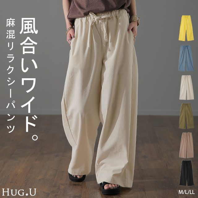 パンツ リネン リネン風 麻風 ワイド フレア ロング ガウチョ ロングパンツ ゴムウエスト ゴム ゆったり 大きいサイズ イージーパンツ イージー リラックス バギーパンツ バギー 動きやすい 着痩せ 着回し ゆったり ゆる シンプル カジュアル おうち時間 お家時間 ストレスフリー ストレッチ ハイウエスト ストレート ロング丈 長い 長め リネンタッチ りぼん リボン 紐 イージー リボン ポケット 大きめ 大きい 部屋着 無地 ラクチン 調節可能 体型カバー 着痩せ ゆる すっきり シンプル カジュアル シンプル 着回し 母の日 プレゼント ギフト 贈り物 大人 ブラック モカ ブラウン ラテ グレー グレージュ ホワイト ベージュ 黒 茶色 茶 灰色 白 M L LL 2L XL 3L XXL LLL 20代 30代 40代 50代 おしゃれ 春夏 春 夏 秋冬 お洒落 オシャレ HUGU ハグユー はぐゆー