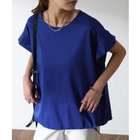 Tシャツ レディース トップス 冷感 フレンチスリーブ 半袖 ドロスト 綿 二の腕カバー ゆったり 薄手