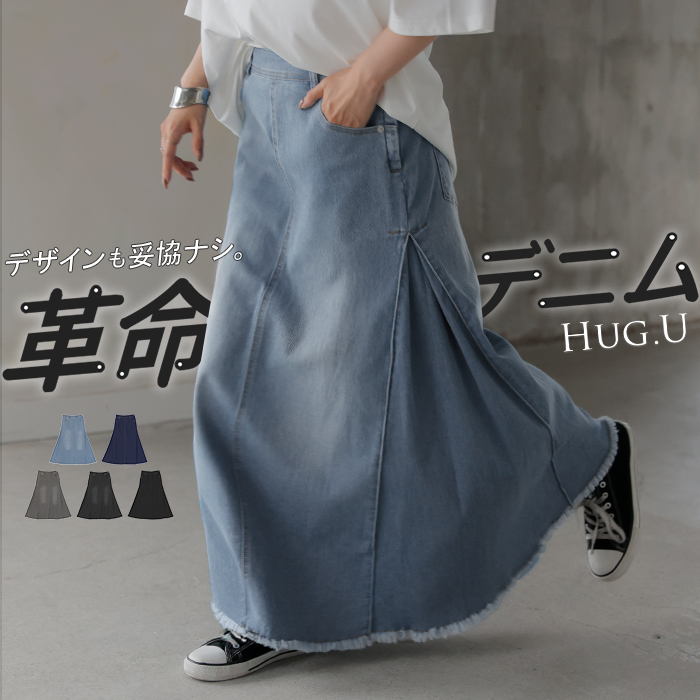 デニムスカート Aラインスカート Aラインデニムスカート ロングデニムスカート ロング丈 ワンウォッシュ 紺 紺色 濃紺 ライトブルー 水色 ヴィンテージ ビンテージウォッシュ インディゴ ユーズドライトブルー デニムブルー ライトブリーチ ネイビー ユーズド風デニム 青 青色 ブラック ブラックデニム デニムブラック グレー 灰色 藍色 旬 トレンド プラスサイズ オーバーサイズ 大きい 大きめ フリーサイズ フリー S M L LL 2L XL 3L XXL LLL カジュアル ベーシック オフィス オフィスカジュアル 着回し シンプル 大人 大人カジュアル オトナ 女性 綺麗 きれい キレイめ きれいめ 高見え 上質 上品 20代 30代 40代 50代 60代 おしゃれ お洒落 オシャレ 春 夏 秋 冬 春夏 秋冬 HUG.U HUGU ハグユー はぐゆー 無地 ハイウエスト センターライン 大きいサイズ 体型カバー