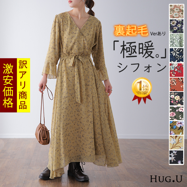 SALE ワンピース 数量限定 シフォン 裏起毛 ワンピ 花柄 膝丈 シフォンワンピース 大きいサイズ ロングワンピース アウトレット