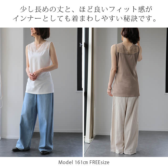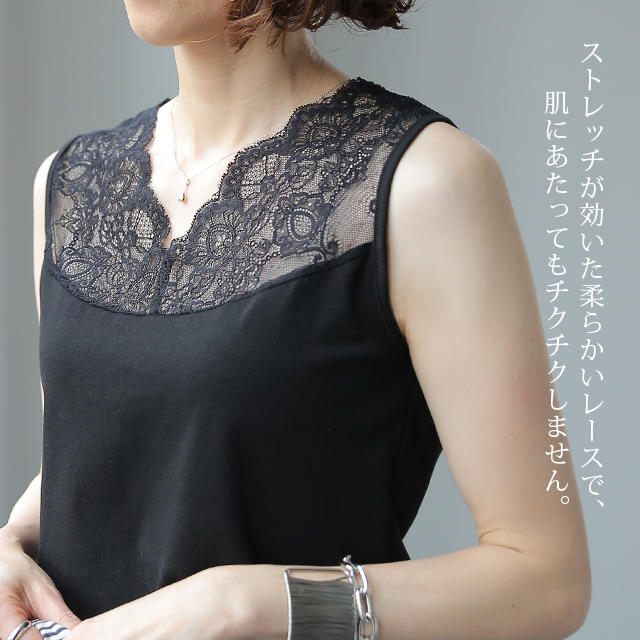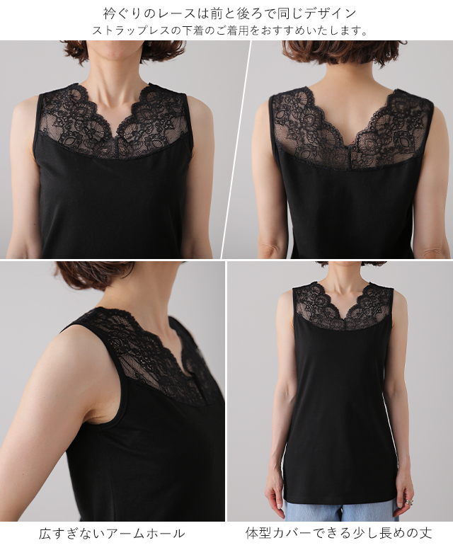 タンクトップ レディース レース インナー チラ見え防止 トップス ノースリーブ レイヤード 大人MUSE
